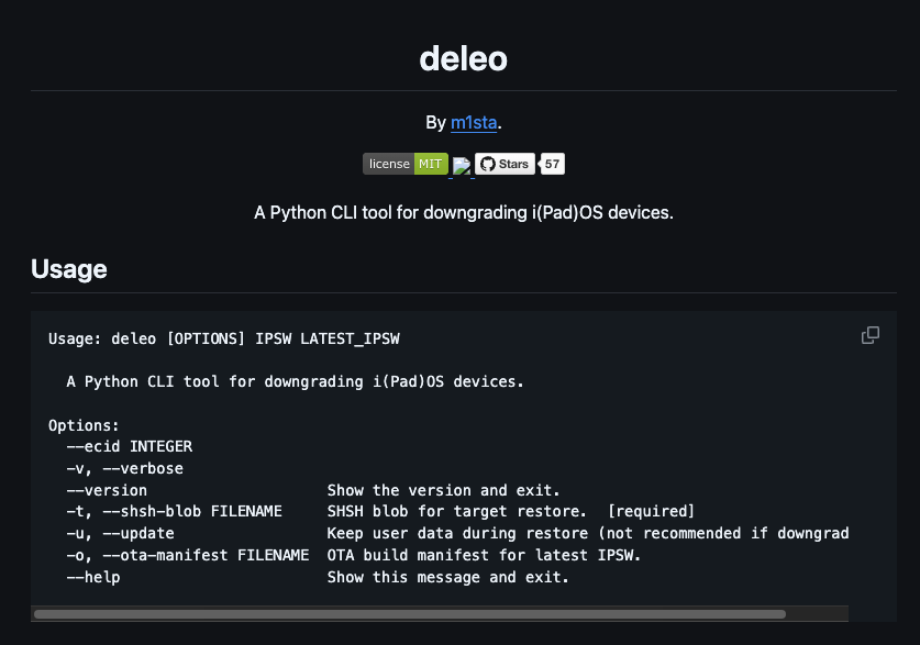 deleo是由m1stadev 开发的一款命令行的降级工具