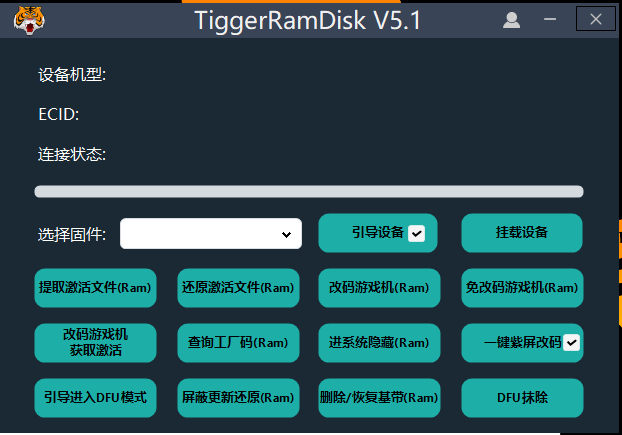2,然后下载老虎Tiggerramdisk工具,并且打开软件,点击引导手机至DFU模式。