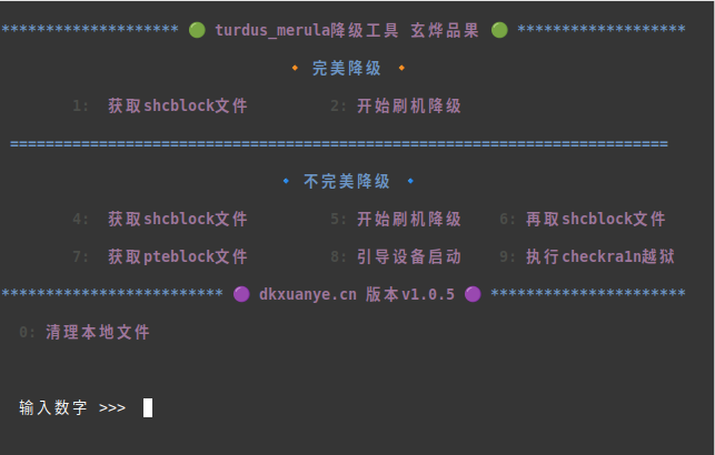 6,在降级工具界面,输入数字5,开始刷机降级。