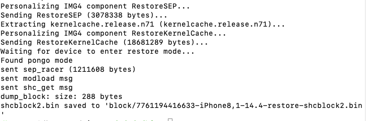 和之前的步骤一样。按照提示输入即可。这一步是再次获取降级后的shcblock文件。