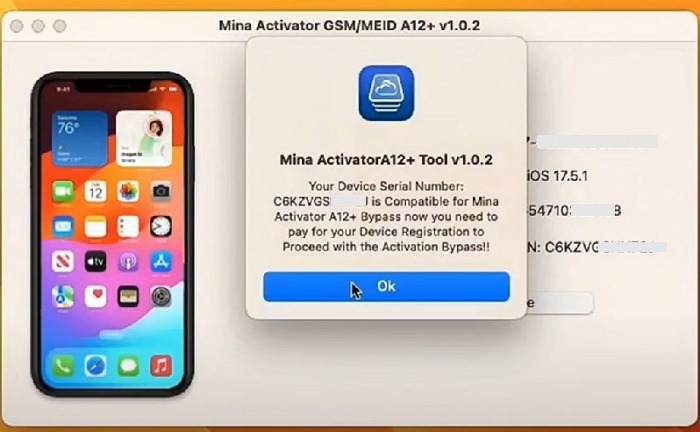 Mina Activator GSM/MEID A12+是一款支持iOS 17系统绕过激活物主锁定界面的软件,并且支持最新iOS 17.5.1的软件。它是由Mina团队研发的一款在MacOS苹果电脑系统环境使用的工具。它支持绕过激活界面的iPhone等设备,让你可以正常使用,而不在受忘记账号密码而无法激活设备的困扰。