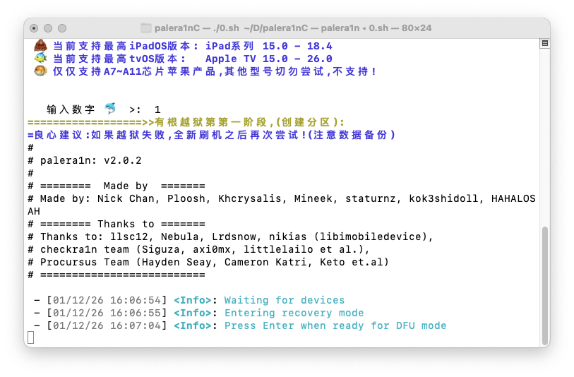 Palera1n越狱简体中文,iOS15.0~18.1越狱支持Mac/Linux/U盘多平台