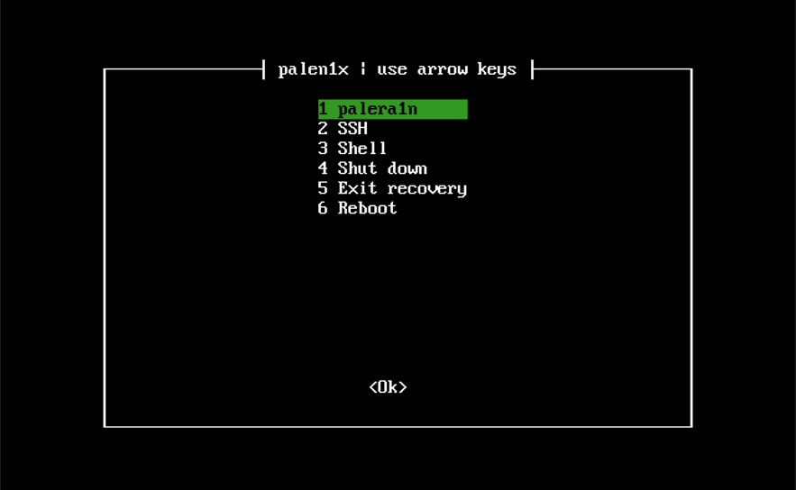 6,如果一切没有问题,顺利进入palera1n越狱工具,如图,选择palera1n,然后回车进入