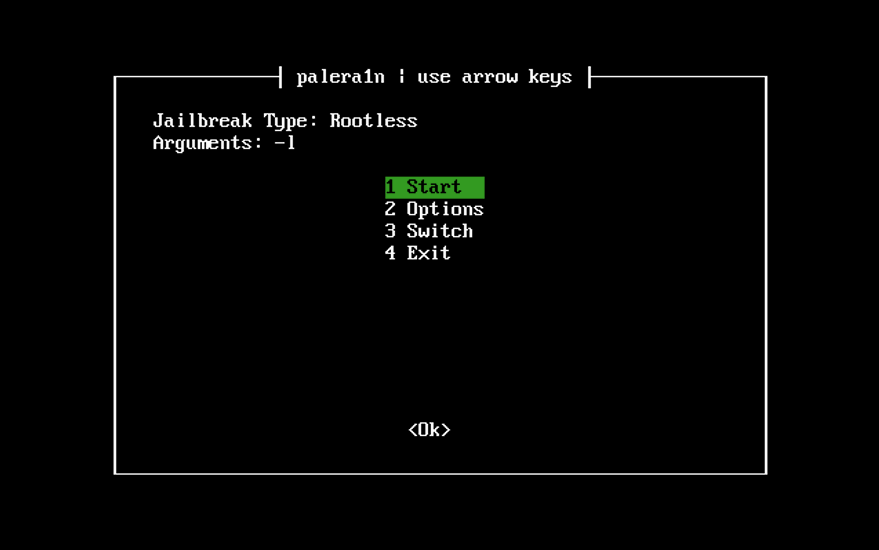 再次打开越狱工具,选择1 Start,开始越狱,启动进入系统后,即可恢复越狱环境!