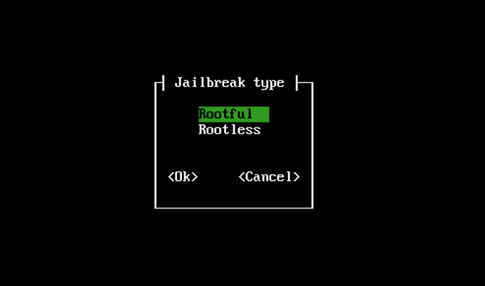 再次运行越狱工具,选择4,然后根据越狱情况选择,如果是有根越狱,选择1,如果是无根越狱,选择2;选择3还可以删除有根越狱创建的越狱分区。