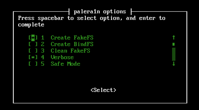 选择U盘启动,选择1 palera1n,进 2 Options,选择5 Restore rootFS 空格键选中5,回车键确认,选择1Start 开始恢复干净系统!